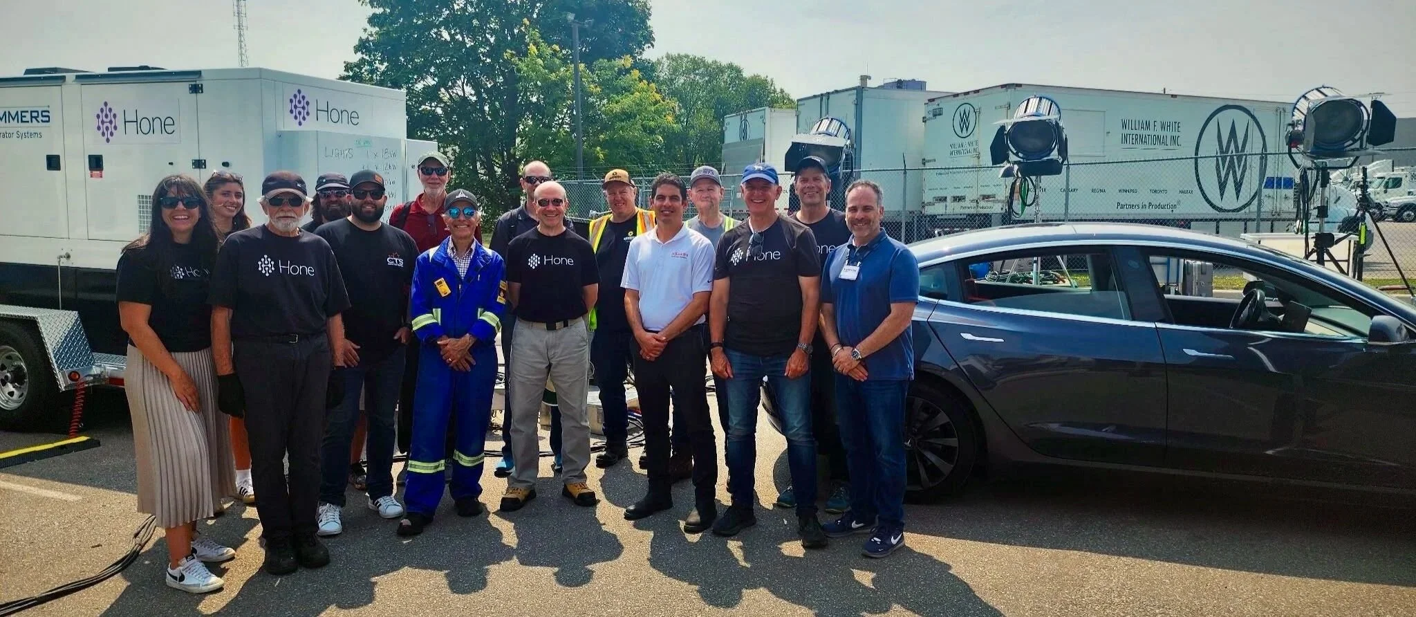 Hone’s hydrogen-fueled genset and fuel supply system powered typical film & TV production equipment , including high-intensity lighting ballasts, equipment trailers, star wagons and EV charging stations. This demonstration validated the clean power solution that the Hone team has engineered, proving its readiness for commercial deployment.
